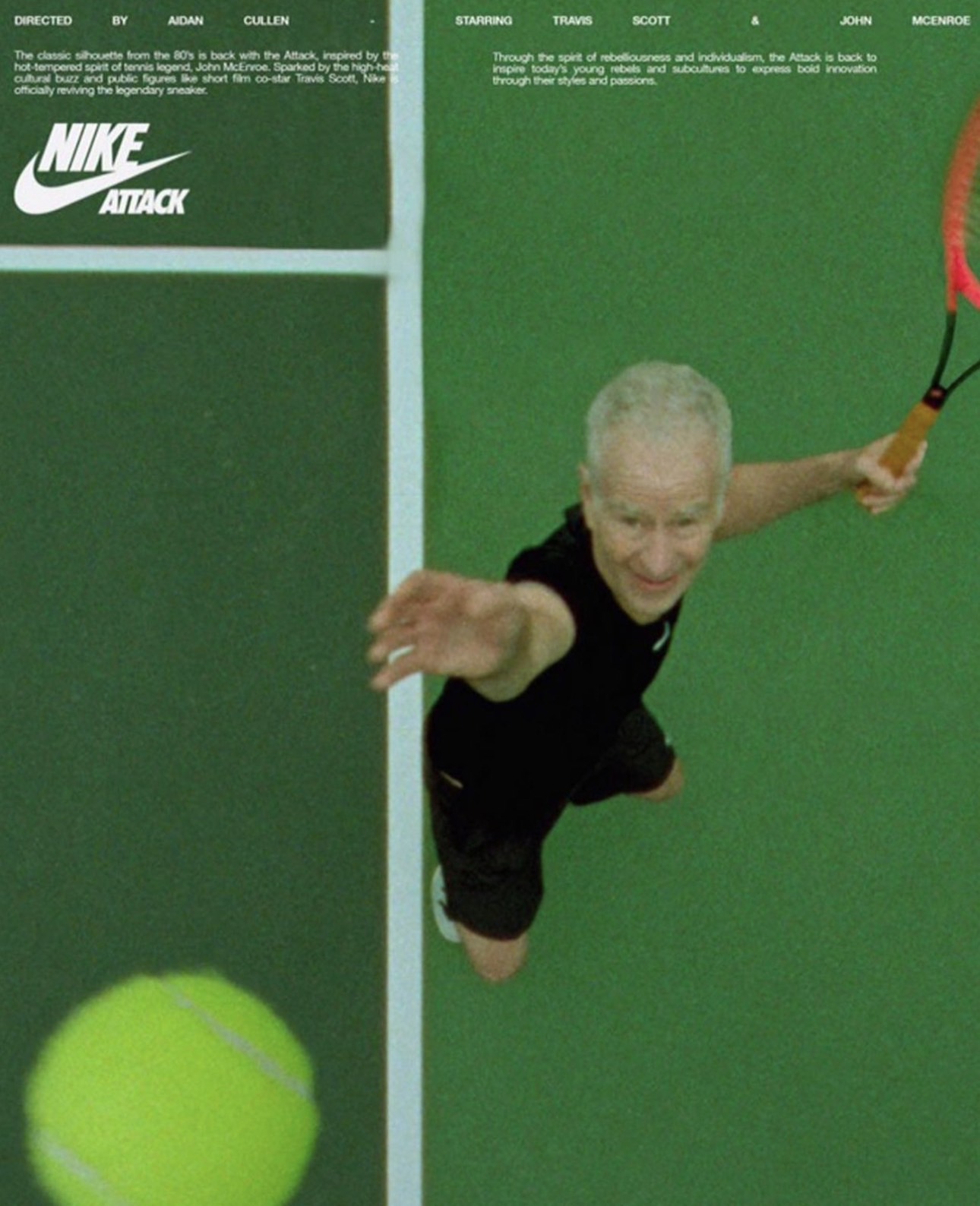 Travis Scott đã rất nhanh chóng trở thành một nghệ sĩ đa tài: không chỉ về nhạc, Travis còn cho thấy tài năng của anh ở bộ môn golf và cả tennis. Và với dự án mới nhất của anh và nhà Nike, La Flame cùng với huyền thoại Jon McEnroe đã cùng xuất hiện trên sân bóng để đánh dấu sự trở lại của mẫu giày Nike Mac Attack. Những fan lâu năm của Nike Mac Attack đã rất nóng lòng chờ đợi sự tái sinh của mẫu giày.